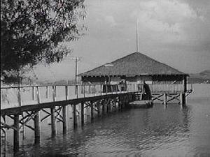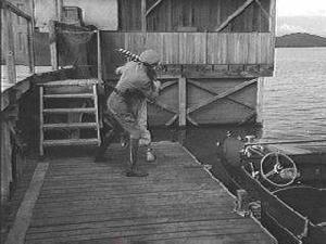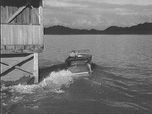 Once located at the lake, but no longer in existance, was the Showboat Restaurant. According to reports, it was mounted on wheels for a rail system and could be lowered into the lake water. It can be seen in two Republic serials: "Manhunt in the African Jungle", and "Spy Smasher".