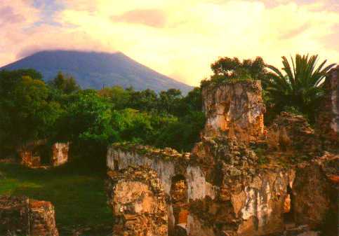 The next day we headed for Antigua, which from 1543 to 1773 was the capital city of Guatemala. In 1773 it contained 32 churches, 18 convents and monastaries, 15 hermitages, 10 chapels, a university and 7 colleges, 5 hospitals and some of the most beautiful buildings constructed in the New World. An estimated population of 80,000 lived in Antigua in 1773 when it was destroyed by an earthquake in that year. The capital moved to present day Guatemala City in 1776. Today 30,000 live in Antigua, one-story buildings have replaced ruined houses, etc., but scattered throughout the old city are ruins of churches, monastaries, universities etc. It was in some of these ruins that John Monroe had suggested (ERBANIA 64) that the "dead city" scenes in The New Adventures of Tarzan were filmed.