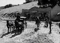 DIRECTIONS: From Los Angeles, take the Hollywood (101) Freeway north. Exit at Topanga Canyon Blvd. south. Head south on Topanga Canyon Blvd. Turn right at Mulholland Drive. Turn left at Daguerre Ave. Turn left at Dardenne St. Turn left onto Dunsmore Dr. That street parallels the southern street in the set. Waterford Way parallels the backside of the north/side street. Della Court runs about the same area as the north side of the sets. The Jack Ingram home on the ranch, which sometimes was seen in films, was no longer there by 1977.