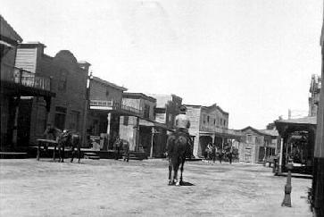 A scene of one of the western streets during the 1950's prior to the devastating fire that swept through the ranch.