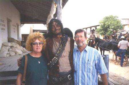 Beth (my wife), Louis Contrares (Almenzar), and me on the set. Louis's father, Robert--with whom I once wrote a script--costarred in the '60's TV series "High Chaparral".