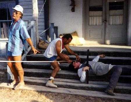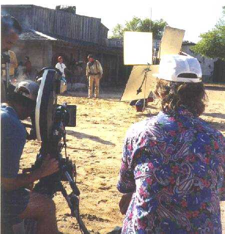 "Rio Diablo" 2nd Unit Director and co-writer, Dave Cass (right), tells stuntman/actor Monte Simons where he would like him to fall after he gets shot.