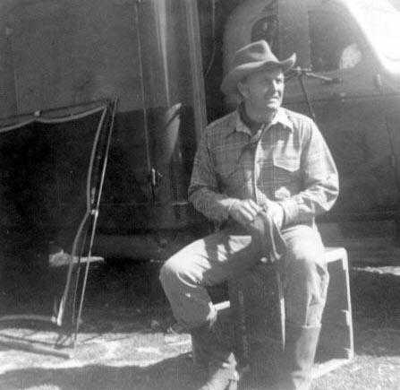 Dick Jones shooting the bull with a crew member between scenes. Taken at Melody Ranch.