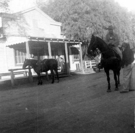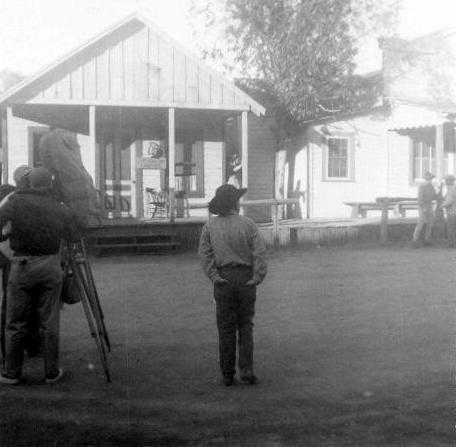 Dick Jones on porch between scenes at Melody Ranch. Building is the same one used in Annie Oakley series for Lofty's (Brad Johnson) Sheriff's Office.