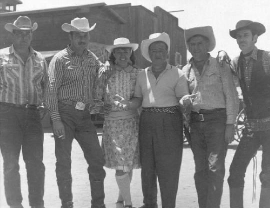 (Center three) Ray Corrigan, Elaine DuPont, and Ken Maynard