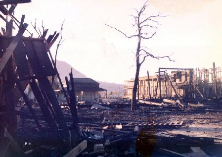 This is the western street after the fire in January 1970. Tree in center of picture was outside Jane Fonda's jail window in "Cat Ballou". Standing building in the distance was behind Lee Marvin in the famous drunk horse scene, in the same picture. Of course, this was the famous "High Noon" street.