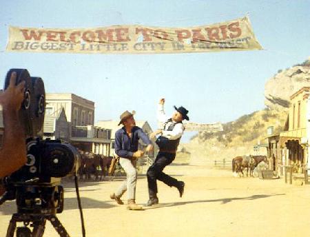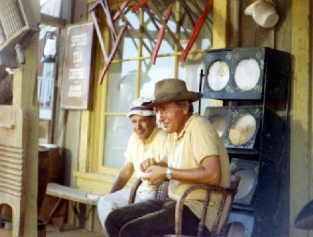 Steve Lodge and Chuck Wilbourn (sound boom man) at the Bell Movie Ranch, lunchtime, Dundee & The Culhane.