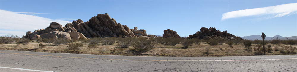 Located on the east side of Apple Valley, Deadman Point (also known as Deadman's Point) is a small mountain chain. The southeast portion of it has been used for filming--westerns in the 1930s-1950s and Sci-Fi films in the 1950's. In 1954, "The Lone Ranger" television show used it in "The Fugitive" when they were filming several episodes in the area, including new opening scenes for the show (filmed at Rabbit Dry Lake, a short distance to the east). The site has been used for a swap meet, motocross racing, and even sported a false front western street and fort. All of that is gone. All that remains are the rocks.