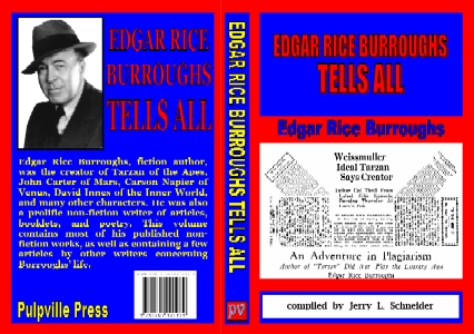 DELUXE SECOND EDITION. A collection of the published non-fiction articles and poetry of Edgar Rice Burroughs, spanning the years 1887 until his death in 1950. Contains over 150 entries written by Burroughs. Also contains many articles by others about Burroughs. The Deluxe Second Edition is available in two versions: a dust jacketed hardcover (see illustration on left) and a casewrap hardcover (see illustration on right). Both measure 6x9 inches and are profusely illustrated.