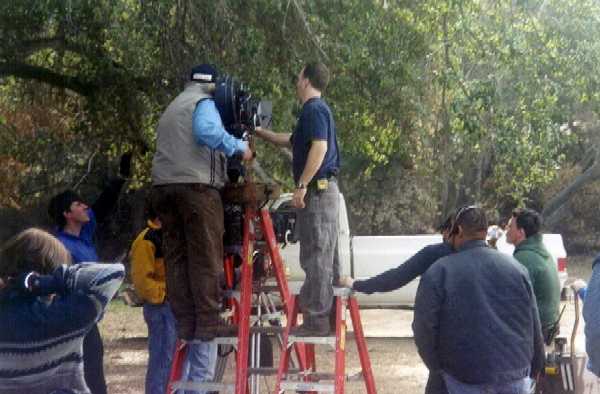 Frank Dobbs and his Camera Assistant, Greg Magido, set up a high shot.