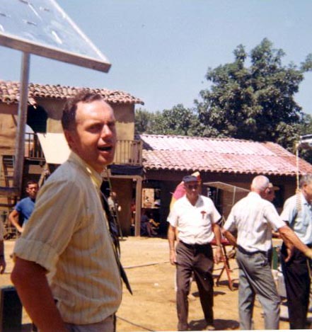 Richard Learman (Assistant Director) on Family Affair set at CBS Studio Center back lot (formerly Republic Studios). I scanned this photo because it shows the Mexican hacienda set better than most of the other pictures I took. This set can be seen in some very old Gene Autry movies; also Roy Rogers, and, I'm sure, most of the other Republic B-Westerns; plus 100's of TV shows from Gunsmoke to Wild Wild West.