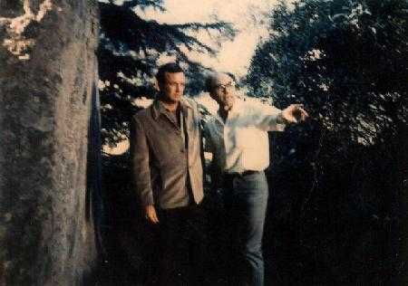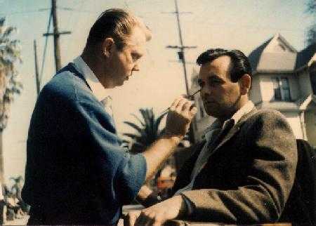 David Janssen and his makeup man, Jack Wilson, on a Los Angeles location.