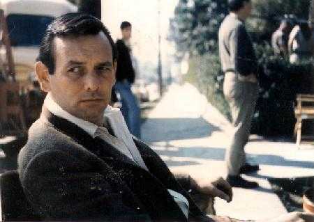 David Janssen relaxing between scenes. Note the yellow truck in the left background: this was our sound and camera truck, known as "The Goose".