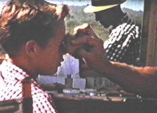 My uncle George worked on "The Fury" TV show as the script supervisor. Knowing how much I wanted to be an actor, he got me a job as an extra on the show ("The Boy Scout Story" episode). I was growing too fast and got taller than the show's star, Bobby Diamond, so after that one shot I was out. My younger brother, Bob, was able to work on several "Fury" shows after that. When he did, I would go along for the ride, always taking my 8mm movie camera. Movie film is all I ever shot when we were on the set at Upper Iversons ranch. The following shots are blow-ups from the old 8mm film.