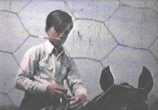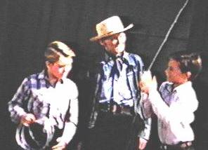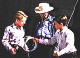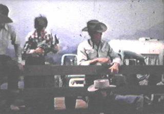 Ronald Keith, Bill Fawcett, and Bobby Diamond doing a scene in front of the Fury barn at Upper Iversons ranch.