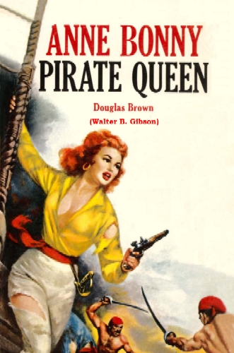 ANNE BONNY PIRATE QUEEN COME BE MY BRIDE Blackbeard bent Anne backwards, ripping away the scarlet skirt from her lashing knees. Now he was fondling her bare flesh, taunting her with sharp, quick caresses that turned her frantic gasps into excited screams. Sudden revulsion brought Anne back to her senses and she wrenched away from him. Blackbeard fol- lowed, picking up a bottle as he went. "Have a drink," he said. "Heat your blood as well as your temper." He tried to pour wine into Anne's mouth, choking her. The wine gushed down her neck, coursing between her breasts. Then, his eyes bulging with lust, he dropped the bottle and backed her toward the bunk. Anne darted for the bottle, clutched it and brought it down solidly on Blackbeard's head. He bellowed once and pitched headfirst to the floor . . . AUTHOR'S PROFILE: Douglas Brown is the pen name of a well-known author of mystery and adventure stories and creator of The Shadow, who has also written many articles on noted figures of the American scene. He has combined these elements in this action-packed historical novel based on the actual lives and experiences of the most colorful figures in the latter-day saga of West Indian piracy. He began his career as a newspaper reporter in the Roaring Twenties and turned to feature writing, with articles widely syndicated throughout the country. In the 1930s he became a prolific author of mystery and detective stories. More recently he has been writing a great number of fact-crime articles plus serious books in the non-fiction and historical fields. His name--WALTER B. GIBSON.