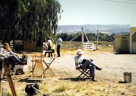 Relaxing between scenes. Patty Duke (Anna) on left, Michael O'Herlihy, the director, in white hat studying his script.