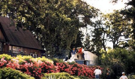 That old CBS camera crew on top of the truck again, this time at the Christian Brothers' winery.
