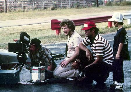 Frank Q. Dobbs, director and co-writer of "Hotwire", talking to his assistant. Producer David Ford is directly behind him (with beard).