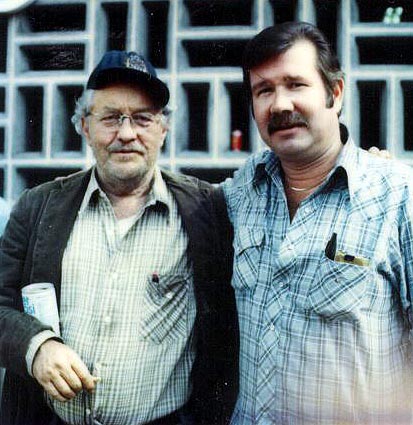 ![]() George Kennedy as twin brother, lawman "Harley", taken on the Hotwire set, 1979. | ![]() George Kennedy as the other twin brother, used car dealer "Farley" on the "Hotwire" set, Houston, Texas. |