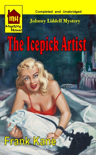 THE ICEPICK ARTIST Liddell leaned back on the couch, lit a cigarette. After a few moments, the blonde re-appeared in the bedroom door. "Jackpot! He was there." Liddell pulled himself out of his seat. “How fast can you get dressed?” The blonde grinned at him. "That depends." "On what?" "On how fast you want me to get dressed." She raised her hand to her neck, fumbled with the zipper. With a quick motion, she unzipped the front of the gown. Her full, tip-tilted breasts spilled out. "There's really no hurry. Monti can't get away until midnight. He'll meet us then." Liddell walked closer to her. He could smell the faint perfume of her body. He slipped his arm around her waist, covered her mouth with his. Her body melted against his, almost unbearably hot.