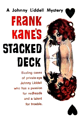 STACKED DECK TROUBLE IS A REDHEAD Lydia had a problem, and she dumped it right in Johnny Liddell's lap, along with her own million dollar body. She was very luscious--but somebody had something on her that was very ugly, and even more expensive. Johnny told her not to pay off the blackmailers. Dollars to doomsday, she would just be buying her own corpse on the installment plan. And after one good look at all of Lydia, Johnny definitely wanted her alive and warm...