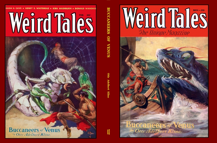 The "Buccaneers of Venus" was first published in Weird Tales pulp magazine from November 1932 to April 1933 as a six-part serial. Four of the issues contained a front cover painting of a scene from the story.