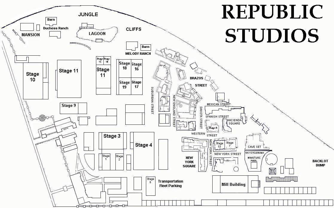Map of Republic Studios (This map is the way the lot was in the mid to late 1950s) |