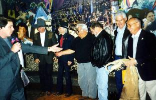 The stuntmen who were able to make the trip were Jerry Vance, Stephen Lodge, Bob Bickston, Bill Raymond, Cory Rodgers, Richard Takakjian, and Bob Charnes. Tom Corrigan, the son of Ray "Crash" Corrigan, attended the event as well.