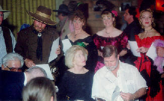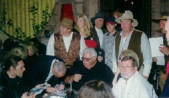 and finally a great dinner attended by the Corriganville stuntmen, most with a family member in tow (spouse, child, grandchild, brother, etc.), and attendee's, including myself and my wife, and the members of the stunt group that performed outside. And while dinner was being served and eaten, we were greeted to many fine videos, amateur and professional.