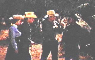 Upper Iversons was the background on many TV westerns in the mid-1950's. Besides the "Fury" show, "My Friend Flicka" shot at another ranch set down the road a piece. One day, we had to stop shooting several times because another company was firing guns. I drifted over and was quite surprised to see that it was the "Roy Rogers Show" company. I whipped out my trusty 8mm movie camera and began shooting. Here are some blow-ups of that 8mm film.