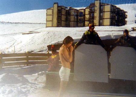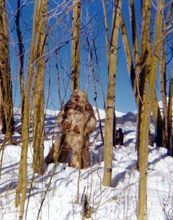 The Snowbeast (Mike London) having his makeup appliance glued in place. Then came the ten-ton hairy suit.