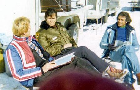 Bo Svenson, Clint Walker, and Robert Logan, share a joke between scenes.
