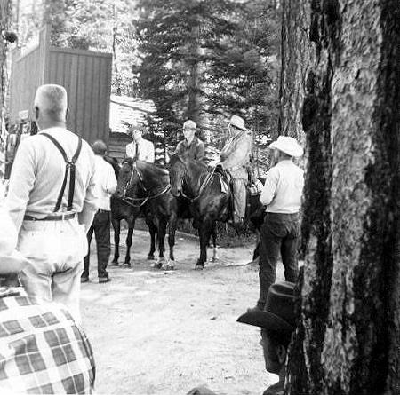 Guy Madison mounting his horse for a shot. Location: Cedar Lake.