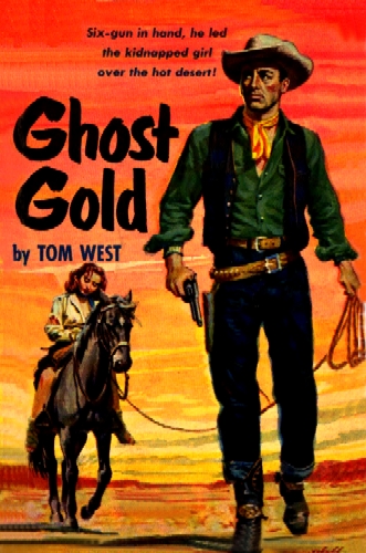 GHOST GOLD $40,000.00 STOLEN FROM THE BANK AT SAGEBRUSH The bank safe was open, the cashier dead on the floor and Bill Saxon, a cowboy from Texas, was unconscious with a revolver in his ahdn. WHERE WAS THE GOLD? WAS SAXON THE MURDERER? WOULD HE