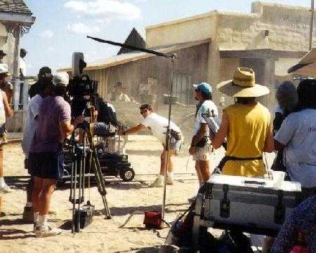 Beth (my wife), Louis Contrares (Almenzar), and me on the set. Louis's father, Robert--with whom I once wrote a script--costarred in the '60's TV series "High Chaparral".