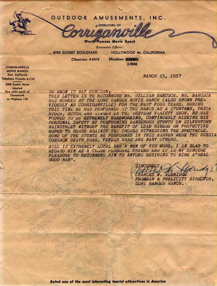 A letter written by Charlie Aldrich for Wild Bill Babcock