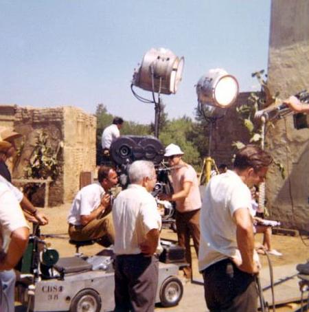 Richard Learman (Assistant Director) on Family Affair set at CBS Studio Center back lot (formerly Republic Studios). I scanned this photo because it shows the Mexican hacienda set better than most of the other pictures I took. This set can be seen in some very old Gene Autry movies; also Roy Rogers, and, I'm sure, most of the other Republic B-Westerns; plus 100's of TV shows from Gunsmoke to Wild Wild West.