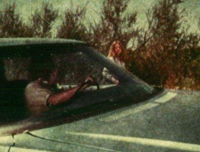 I actually am credited as an actor in Deadly Harvest. I played a motorist who attempts to pick up Patty Duke as she walks down the road at the end of the movie. The scene was cut out, BUT, I still get residuals from it, and IMDB (Internet Movie Database) still carries me as part of the cast. This is a frame from the actual film shot of the scene. The editor gave me the film after it was cut out, so it didn't end up on the cutting room floor after all -- it's in my desk drawer.