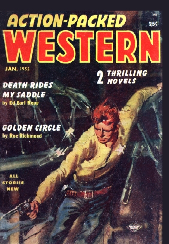 ACTION-PACKED WESTERN, January 1955 Contents: DEATH RIDES MY SADDLE by Ed Earl Repp GOLDEN CIRCLE by Roe Richmond INCIDENT AT ALKALI by Lee Floren BLOOD MONEY by Ray G. Ellis WOMEN TAKE FOOL CHANCES by Helene Huff TRICK DRAW by J. J. Mathews Pulp Sized Magazine: 7 x 10 inch 100 pages $14.95