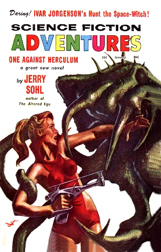SCIENCE FICTION ADVENTURES, January 1958 Fiction Contents: HUNT THE SPACE-WITCH! by Ivar Jorgenson ONE AGAINST HERCULUM by Jerry Sohl MAN OVERBOARD by Alex Kirs THE GIRL WAS DANGEROUS by Walter L. Kleine Digest Magazine: 5.5 x 8.5 inch 132 pages $14.95 ISBN 978-1647200428