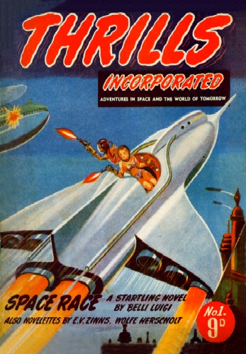 THRILLS INCORPORATED #1 ASTEROID ADVENTURE by Wolfe Herscholt CASTAWAY PLANET by E. V. Zinns SPACE RACE by Belli Luigi Pulp Sized Magazine: 7 x 10 inch 50 pages $10.95