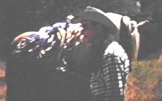 Upper Iversons was the background on many TV westerns in the mid-1950's. Besides the "Fury" show, "My Friend Flicka" shot at another ranch set down the road a piece. One day, we had to stop shooting several times because another company was firing guns. I drifted over and was quite surprised to see that it was the "Roy Rogers Show" company. I whipped out my trusty 8mm movie camera and began shooting. Here are some blow-ups of that 8mm film.