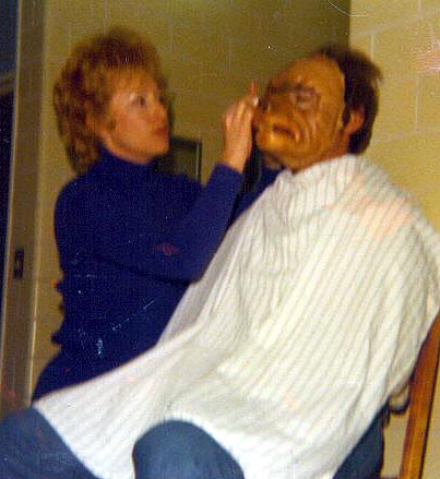 The Snowbeast (Mike London) having his makeup appliance glued in place. Then came the ten-ton hairy suit.