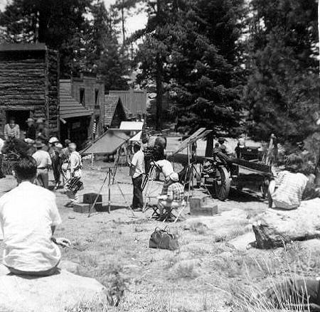 Guy Madison mounting his horse for a shot. Location: Cedar Lake.