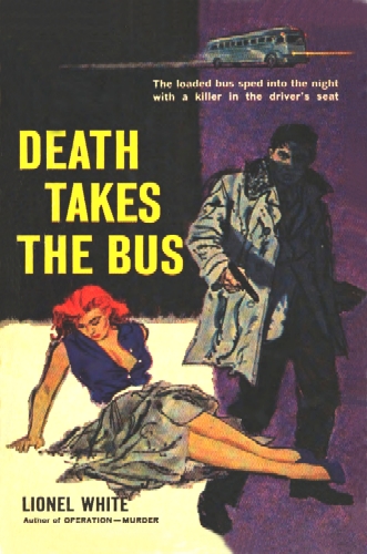 DEATH TAKES THE BUS Lionel White's, DEATH TAKES THE BUS--a tale of men whose trade is violence, whose tools are guns, whose wage is death. The plan was well made. The bus carrying Hardin to the death house was commandeered precisely on schedule. Hardin, free of handcuffs, backed by his number-one thug, forced the bus out into the desert toward the rendezvous with the black sedan. And then the plan exploded. The sand storm rose--one of the worst in Southern California's history--and the bus mired down hopelessly. Hardin's gunman raped a girl. The bus driver was shot to death. And--most dangerous of all--courage flamed in the shocked passengers. Weaponless, silent, but as one, they struck back against the men of violence--and paid them off in their own brutal coin.