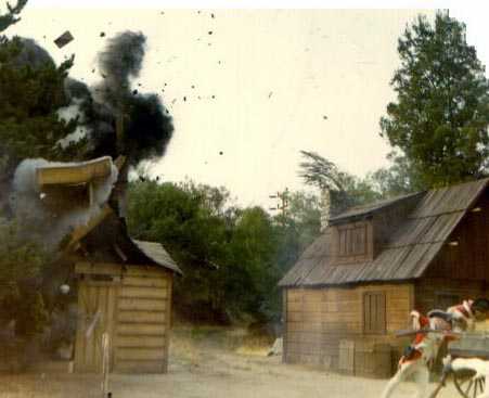 Here's what they were waiting for, an explosion, and time to earn their pay. Jesse Wayne and Dave Cass in far right of picture, beginning their falls.